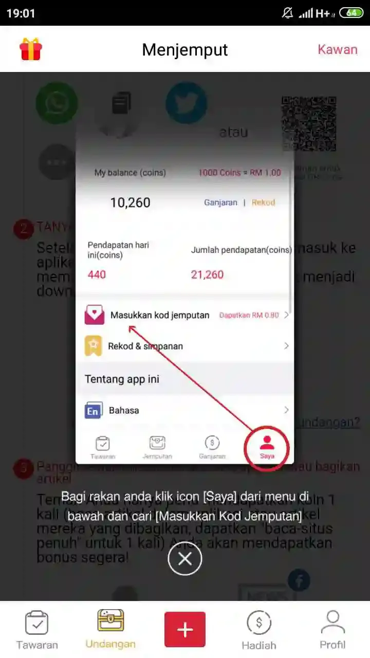 Klik profil kalian, tap masukkan kode bonus rujukan teman = [1878105]